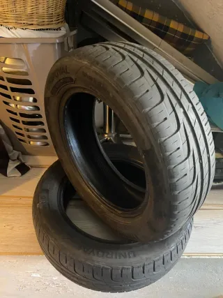 Dos neumáticos Uniroyal Shark Skin en buen estado. - Medida visible en la foto. - Dibujo de banda de rodadura. - Marca Uniroyal. 185-60-15