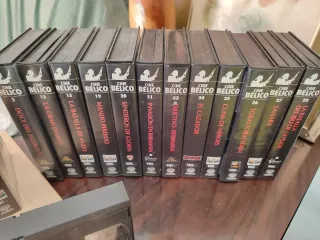 Colección de 28 cintas de vídeo de la serie Cine Bélico. - Títulos incluidos: - Escrito bajo el sol (30) - Las águilas azules (31) - Tierra y libertad (32) - La batalla de las Ardenas (33) - Macarthur, el general rebelde (35) - Almas en la hoguera (36) - La fortaleza (37) - La batalla de Anzio (15) - Doce del patíbulo (2) - La gran evasión (13) - Mando perdido (19) - Senderos de gloria (20) - Invasión en Birmania (21) - Objetivo: Birmania (23) - El cazador (24) - Cuna de héroes (25) - Tora! Tora! Tora! (26) - Sahara (27) - La batalla del río de la plata (28) El precio es por el lote completo.