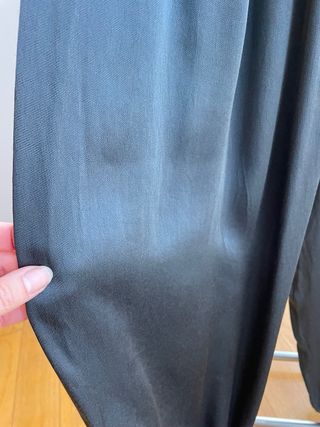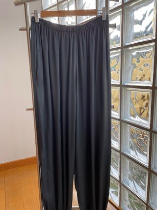 Pantalón bombacho de color gris en tejido satinado. Talla única, con goma en la cintura. - Cintura elástica. - Bolsillos laterales.