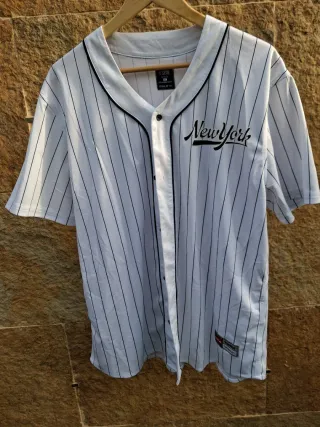 Camiseta de estilo deportivo con el nombre de New York en la espalda. - Diseño a rayas verticales. - Cuello tipo polo.