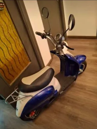 Moto eléctrica infantil Vespa estilo con potente motor de 300W, batería de alto rendimiento de 36V 12Ah, cofre debajo del asiento, luz delantera, llave de contacto y espejos XL Asiento de polipiel, super realista, 3 velocidades seleccionables y bloqueables con llave Equipada con motor de 300W, ruedas de 6.5", luz delantera y 3 velocidades ajustables, para niños a partir de 6 años. Eléctrica Infantil de 36V. Con un diseño retro que evoca el encanto esta motocicleta eléctrica para niños y niñas - Indicador de batería gráfico - Pata de cabra. - Dimensiones: 100 cm largo x 51 ancho x 106 alto.
