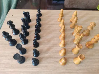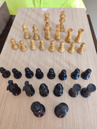 Conjunto de piezas de ajedrez de madera, con un diseño clásico. - Piezas de color negro. - Piezas de color blanco. - Material: Madera. Falta la placa. Ver foto para comprobar su estado.