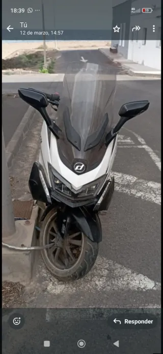 Scooter Daelyn en colores negro y blanco. Un vehículo ágil y moderno para tus desplazamientos. - Diseño deportivo. - Parabrisas alto para mayor protección. - Espejos retrovisores amplios. La moto me dieron un golpe está para areilar las tapas y algunas cositas mejor venir a verla se acepta cambios por videojuegos y figuras