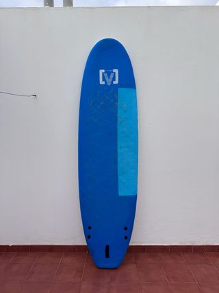 Tabla de surf de color azul con logo de Victory. - Diseño alargado. - Dos zonas de diferente tonalidad azul. - Tres orificios en la parte inferior.