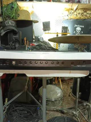 Teclado sintetizador Yamaha MM6. - Diseño compacto y ligero. - Interfaz intuitiva con pantalla LCD. - Incluye fuente de alimentación.