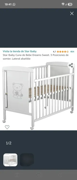 Cuna para bebé Star Ibaby modelo Dreams Sweet. Cuenta con lateral abatible y 3 posiciones de somier. - Lateral abatible. - 3 posiciones de somier. - Diseño con osito. Colchon incluido en el precio