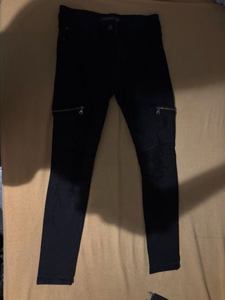 Pantalón vaquero para hombre con un diseño moderno y detalles de cremalleras. - Corte ajustado. - Cremalleras decorativas en los bolsillos delanteros. - Tejido vaquero resistente. PRECIO NEGOCIABLE.