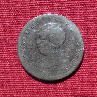 MONEDA PLATA 1891 ALFONSO XIII 1 PESETA (IMAGEN)