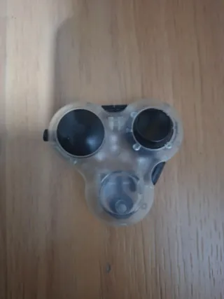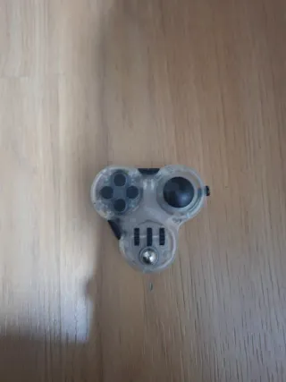 Juguete antiestrés con diseño de mando de consola. - Botones tipo D-pad. - Joystick. - Rueda giratoria. - Bola metálica. - Diseño transparente.