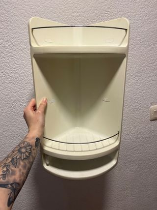 Práctica estantería de esquina para organizar tu baño. Su diseño se adapta a cualquier rincón. - Fabricada en plástico resistente. - Color beige neutro.