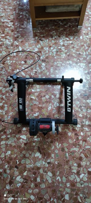 Rodillo de entrenamiento B'Twin Inride 100 para bicicletas. - Modelo IN RIDE 100. - Tecnología magnética. - Usado 4-5 veces durante la pandemia, después almacenado en un armario. (De ahí el polvo). - Venta por incompatibilidad con mi bici actual. - No hago cambios, solo venta. - Podemos negociar el precio. - Mejor venta en persona, pero puedo enviar también.