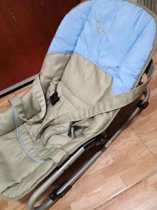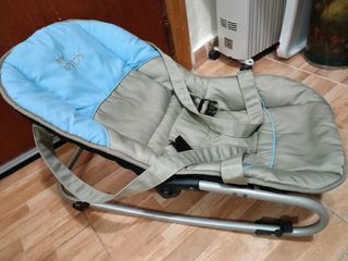 Hamaca para bebé con diseño acolchado y estructura metálica. - Color azul y beige. - Arnés de seguridad. - Marca: My Nurse.