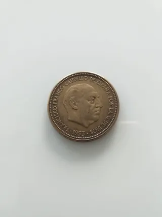 Moneda conmemorativa de Franco. - Año: 1953 - Valor: 2,50 pesetas - Diseño: Franco Caudillo de España por la G. de Dios - Borde con puntos y estrellas.