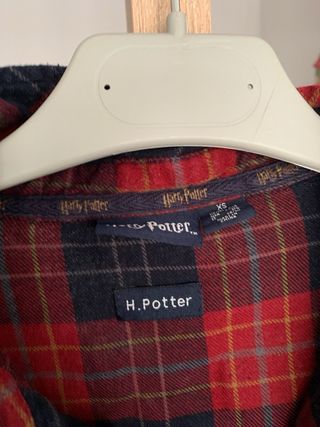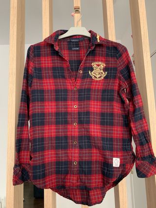 Camisa de franela con estampado de cuadros y el escudo de Hogwarts. - Diseño de cuadros rojos y azul marino. - Escudo de Hogwarts bordado en dorado en el pecho. - Cierre de botones. - Manga larga.