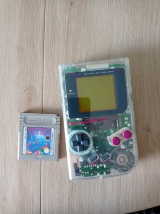 Consola portátil clásica Nintendo Game Boy DMG con carcasa transparente. Incluye el juego Tetris. La Gameboy funciona como el primer día. Sonido e imagen de 10. Todo original. Precio cerrado. - Carcasa transparente. - Juego Tetris incluido.