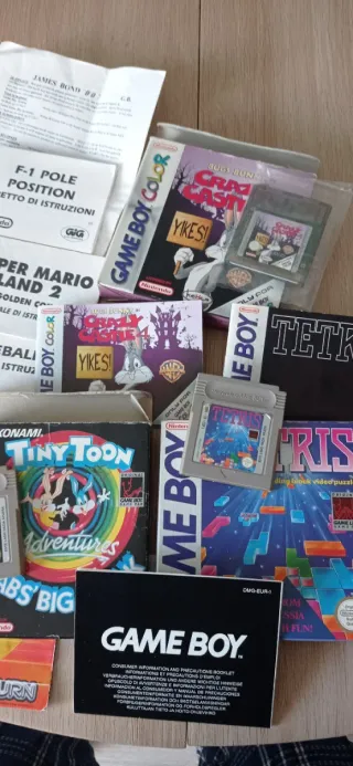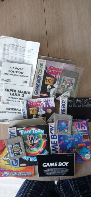 Lote de juegos originales para Game Boy, incluyendo sus manuales. - James Bond 007 - F-1 Pole Position - Super Mario Land 2: 6 Golden Coins - Baseball - Bugs Bunny in Crazy Castle - Tiny Toon Adventures: Babs' Big Break - Tetris - Sega Saturn (manual)
