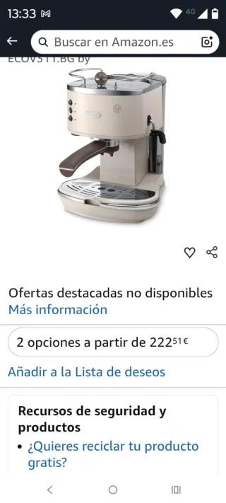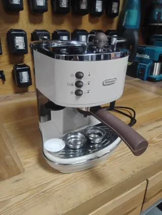 Cafetera DeLonghi de estilo retro en color beige. - Diseño elegante y compacto. - Acabado en tono crema.