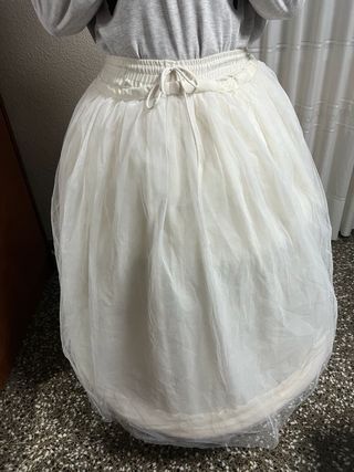 Cancán de tul blanco para adulto, ideal para dar volumen a faldas o vestidos. - Cintura elástica con cordón. - Tejido de tul ligero.