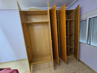 Armario de madera con un diseño clásico y funcional. - Amplio espacio de almacenamiento. - Puertas con tiradores metálicos. - Acabado en tono madera natural.