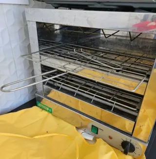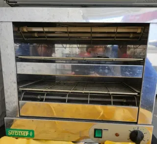 Tostador industrial de la marca Sudimp, ideal para negocios. - Fabricado en acero inoxidable. - Bandeja extraíble para facilitar la limpieza. - Control de temperatura. - Diseño robusto y duradero.
