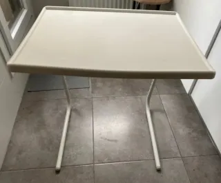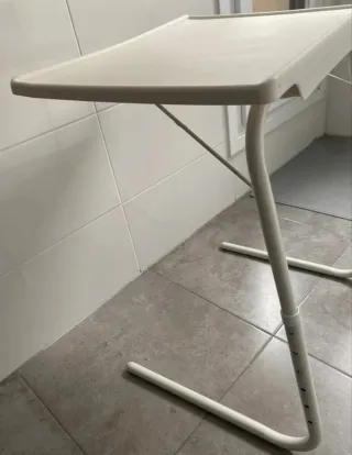 Mesa auxiliar plegable, muy práctica para tener a mano. - Superficie lisa y fácil de limpiar. - Patas metálicas estables.