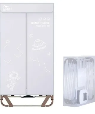 Secadora portátil de la marca Uten con un diseño moderno y divertido. - Diseño con temática espacial: astronauta, ovni y constelaciones. - Estructura metálica. - Cubierta de tela. - Incluye accesorios de montaje.