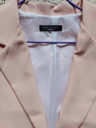 - Elegante chaqueta rosa con un diseño tipo esmoquin.