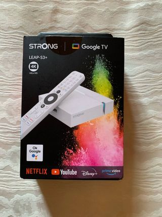 Strong Leap-S3+ Nuevo, lo abri para ver que encendia y funcionaba bien Certificados oficiales Netflix, Prime Video, Disney, etc. Google Android TV 14. Entrada red (Ethernet), Dolby Atmos & Dolby Dispone de Chromecast integrado. Compatible con Ok Google. Capacidad: 2/16 GB. Tags: Google Chromecast, Android TV Google TV, Tv Box, Mecool, Nvidia Shield, Xiaomi Mi Box, Mecool, Homatics, Mi Box S, Fire TV Stick.