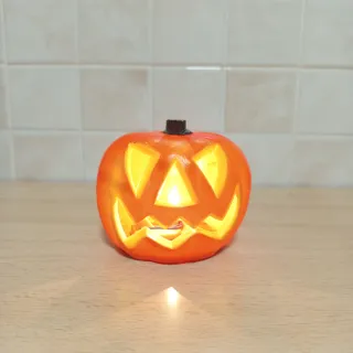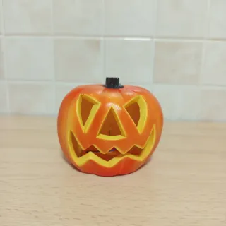 Calabaza decorativa con diseño de Halloween. - Color naranja y amarillo. - Fabricada en plástico. - Funciona con pilas.