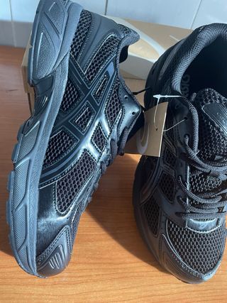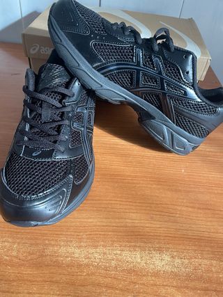 Zapatillas ASICS originales totalmente nuevas, sin uso. Color negro, diseño cómodo y transpirable, perfectas para running, gimnasio o uso diario. Nunca utilizadas, en estado impecable, con suela y cordones intactos (ver fotos). Se venden por no darles uso. Si tienes cualquier duda, ipregúntame sin compromiso! Marca: ASICS Color: Negro Estado: Nuevo con caja Estilo: Deportivo / Running / Casual Cierre: Cordones