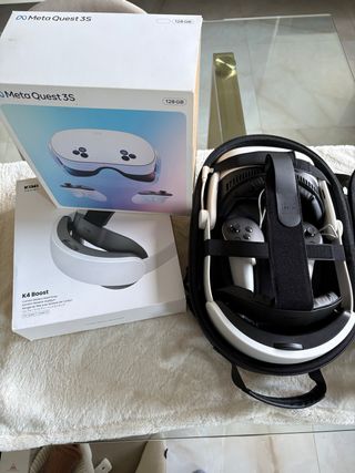 Se vende Meta Quest 3S con 128GB de almacenamiento, junto con el accesorio KIWI K4 Boost para mayor comodidad, aumentando en 2 horas la batería, para disfrutar por más tiempo de la experiencia. - Meta Quest 3S 128GB. - Accesorio KIWI K4 Boost (correa de cabeza con batería), valorado en 80€. - Incluye funda rígida de transporte, valorada en 25€. - Está todo en perfecto estado, con muy poco tiempo de uso. Las compré por capricho y casi ni las he usado.