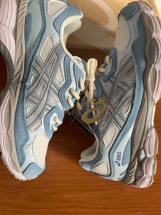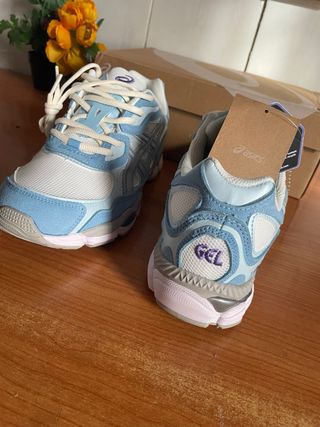Zapatillas ASICS Azul Claro y Blanco Nuevas