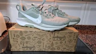 Zapatillas Nike Pegasus Trail en tonos verde y blanco. Diseñadas para senderismo y trail running. - Parte superior de malla transpirable. - Suela con buen agarre para terrenos irregulares. - Detalle de swoosh lateral característico de Nike.