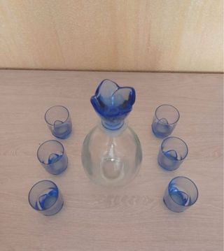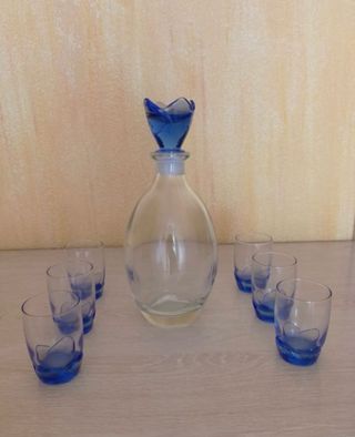 Juego de licor de cristal azul