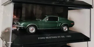 Réplica detallada del Ford Mustang GT 390 de 1968 a escala 1:43. Un clásico americano. - Color verde oscuro. - Presentado en su vitrina expositora.