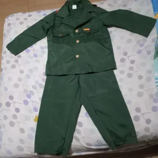 Disfraz de militar para niño en color verde. Perfecto para fiestas temáticas o juegos. - Chaqueta con botones dorados. - Bolsillos en la parte delantera. - Detalles de bandera en la manga y solapa.