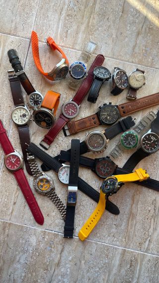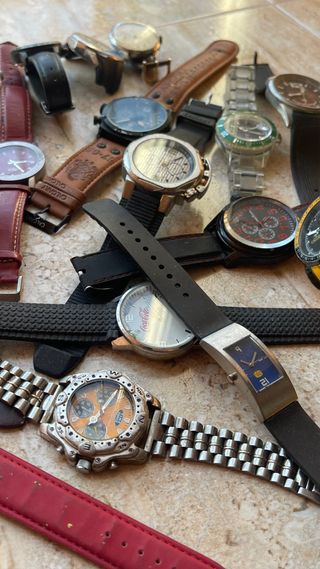 Lote de 18 relojes variados. - Diseños diversos. - Combinaciones de colores plateado y rojo.