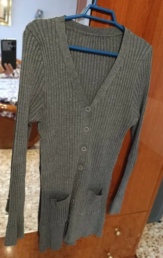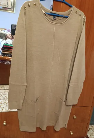 Vestido suéter de manga larga con un diseño elegante y cómodo. - Detalle de botones dorados en los hombros. - Dos bolsillos frontales. - Costura central vertical. - Tejido de punto suave. Envíos desde 5€