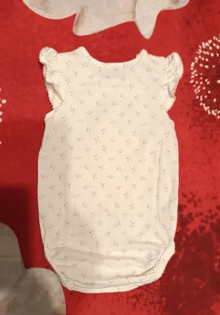 Body de bebé de manga corta con un delicado estampado floral. - Color blanco con estampado de flores rosas y detalles grises. - Mangas con volantes y encaje. - Pequeño lazo decorativo en el cuello. - Cierre de botones a presión en la parte inferior. Envíos desde 5€