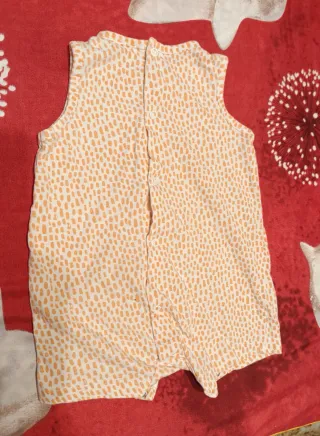 Body de bebé con un divertido estampado de manzana y la palabra yummy. - Diseño sin mangas. - Estampado de puntos naranjas sobre fondo blanco. - Dibujo de manzana sonriente con mejillas rosas. - Cierre inferior con botones a presión. Envíos desde 5€