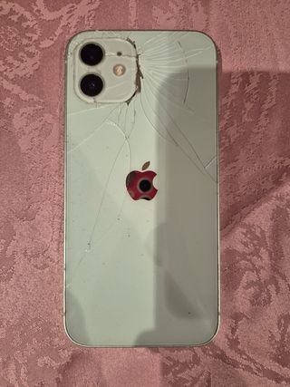 Teléfono móvil Apple iPhone 12 se me callo desde el sofá y se rompió la parte de atrás. Me lo compré a principios de 2024. Lo vengo porque me quiero comprar otro. Tiene 93% de vida y cuando lo compré tenía 100%. Lo compré por Back Market y me costó 350€ en estado excelente y 128Gb. Viene con 2 fundas de regalo: Una negra y la otra verde. Las dos están un poquito rotas