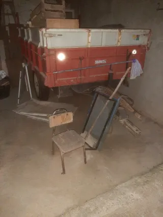 Remolque agrícola de la marca Broseta, ideal para tractor. - Color rojo y blanco. - Con luces traseras. Único problema que las ruedas que lleva hay que cambiarlas por unas de más índice de carga documentación al día a falta de itv