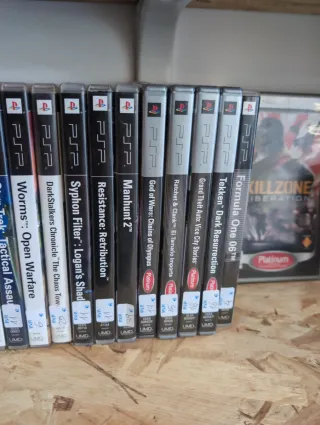 Colección de juegos para PSP en formato UMD. - Hancock - Daxter - Tom Clancy's EndWar - PlayChapas Football Edition - Star Trek: Tactical Assault - Worms: Open Warfare - Darkstalkers Chronicle: The Chaos Tower - Syphon Filter: Logan's Shadow - Resistance: Retribution - Manhunt 2 - God of War: Chains of Olympus Se vende por lotes o unidad, precios en la fotos.