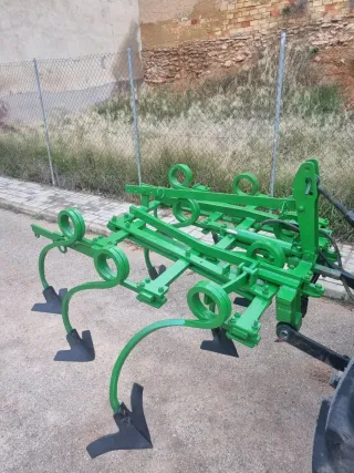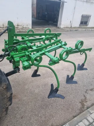 Cultivador, arado, gradas, ganchos, de 9 brazos curvos caracol o rammsome,extensible por un hidráulico central, repasado pintado y cuchillas rejas en uso, enganche rápido al tractor.