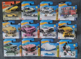 Conjunto de varios modelos de Hot Wheels, incluyendo camiones y coches de Fórmula 1. - Camión Hot Wheels Hype Hauler con diseño DC Comics. - Camión Hot Wheels Transformers. - Set de 5 coches de Fórmula 1 2024. - Caja Hot Wheels Legends Tour con varios coches clásicos.