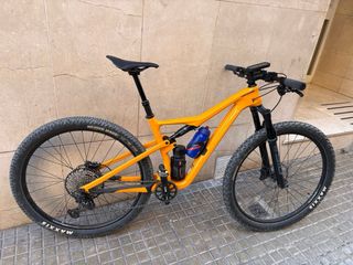 Bicicleta Cannondale Scalpel en color naranja. Diseñada para un rendimiento óptimo. - Cuadro de carbono. - Suspensión delantera y trasera. - Frenos de disco hidráulicos. - Ruedas Maxxis.