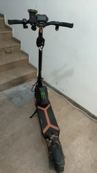 Patinete eléctrico Kukirin G2 Max en color negro y naranja. - Diseño robusto y moderno. - Manillar ajustable. - Ruedas todoterreno.
