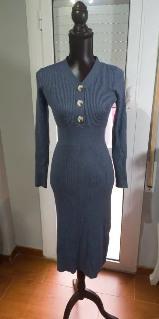 Elegante y femenino, este vestido de punto es perfecto para cualquier ocasión. Su corte ajustado realza la silueta, mientras que el diseño acanalado aporta un toque sofisticado. Cuenta con botones nacarados en la parte frontal y mangas largas, ideal para los días frescos. ✔ Tejido cómodo y elástico ✔ Corte favorecedor ✔ Color azul grisáceo fácil de combinar ✔ Estilo elegante y atemporal ✔ En muy buen estado Perfecto para looks casuales o más formales. Se puede combinar con botas, tacones o zapatillas según la ocasión. 📦 Envío rápido 💬 No dudes en escribirme para cualquier pregunta