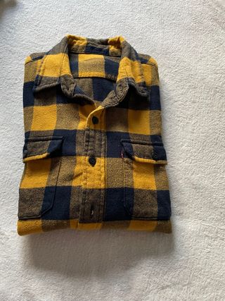 Camisa de cuadros de Levi's para hombre. Presenta un diseño clásico y versátil. De franela. - Patrón de cuadros en tonos amarillos y azul marino. - Dos bolsillos en el pecho con solapa. - Cierre de botones.
