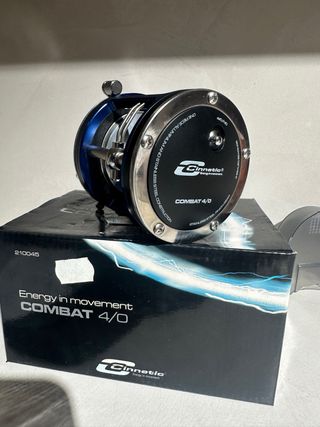 Carrete de pesca Cinnetic Combat 4-0 a estrenar. Nunca montado El carrete cinnetic combat 4/0 ha sido diseñado por los ingenieros de cinnetic con una estructura rigida de aluminio mecanizado y un potente piñón de acero inoxidable. Lo que nos garantiza un funcionamiento fiable y una larga durabilidad. Su guia hilos te facilitará la colocación de la línea en el carrete, incluso sin tener experiencia. - Diseño robusto y elegante. - Mango con pomo ergonómico.